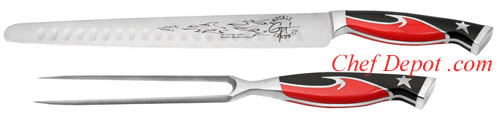 Guy fieri designed a set of luxury knives that have ergonomic features to offer comfort and support.