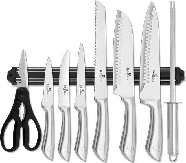 Stylish knife set from berlinger haus. Stainless steelchef knife 20 cmbread knife 20 cmslicer knife 20 cmutility knife 12,5 cmparing knife 9 cmstainless steel standcolor. Chef knife, bread knife, two santoku knives, utility knife, paring knife, one pair of scissors, knife sharpener. Berlinger haus 6 pcs knife set with stainless steel stand, passion collection.
