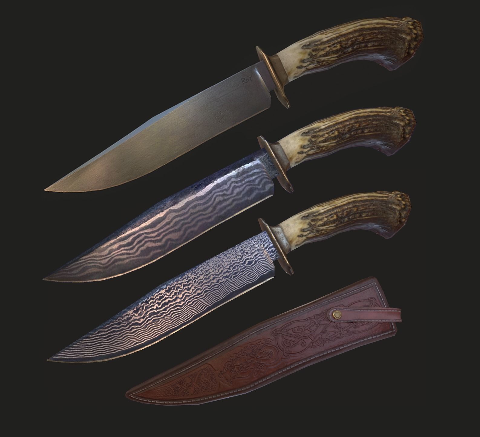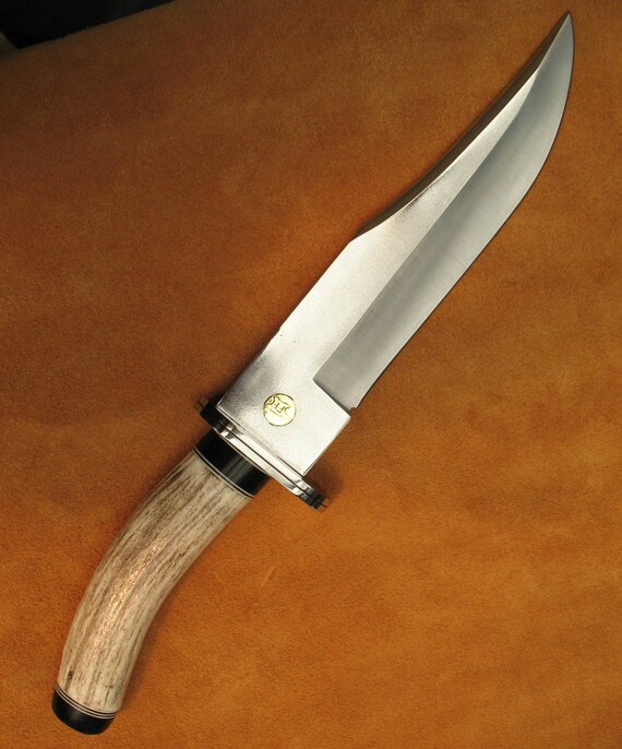 Bowie knife with a deer antler, black walnut handle.