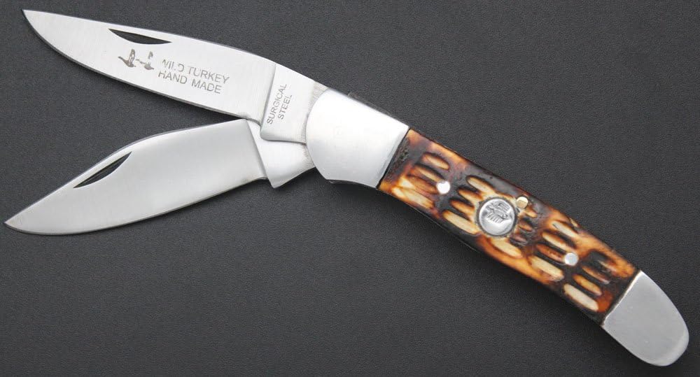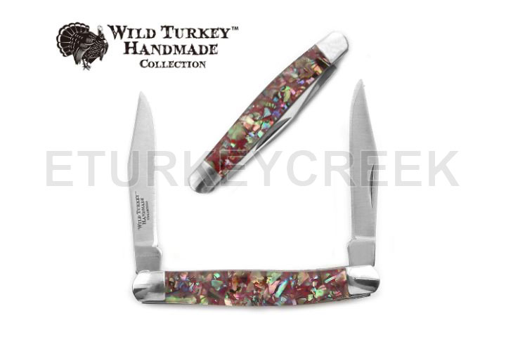 Wild turkey handmade pearl handle action assist folding pocket knife hunting camping fishing outdoors. An assortment of pocket knives. This assortment contains a pair of two blade knives from wild turkey and a trapper knife from case with a yellow toned handle marked forgiven.