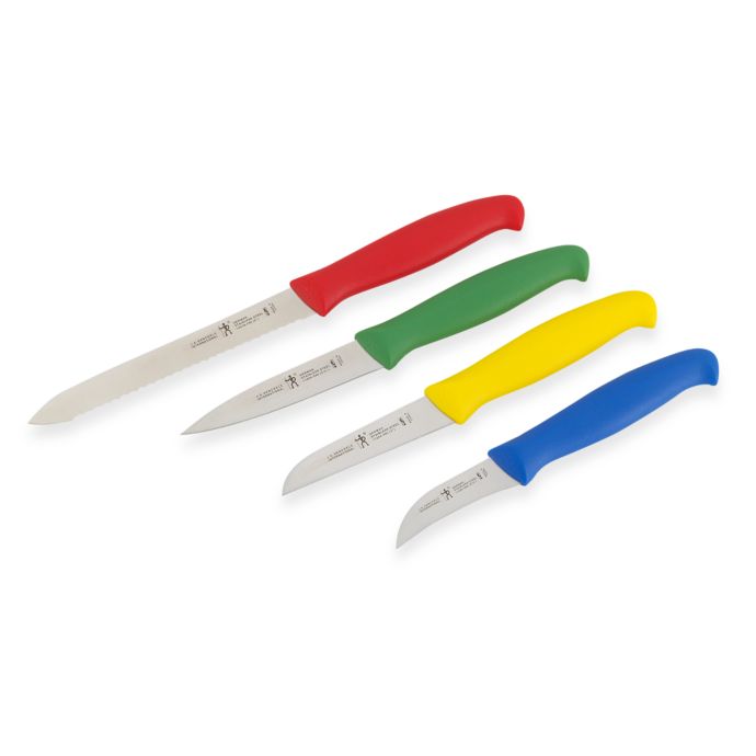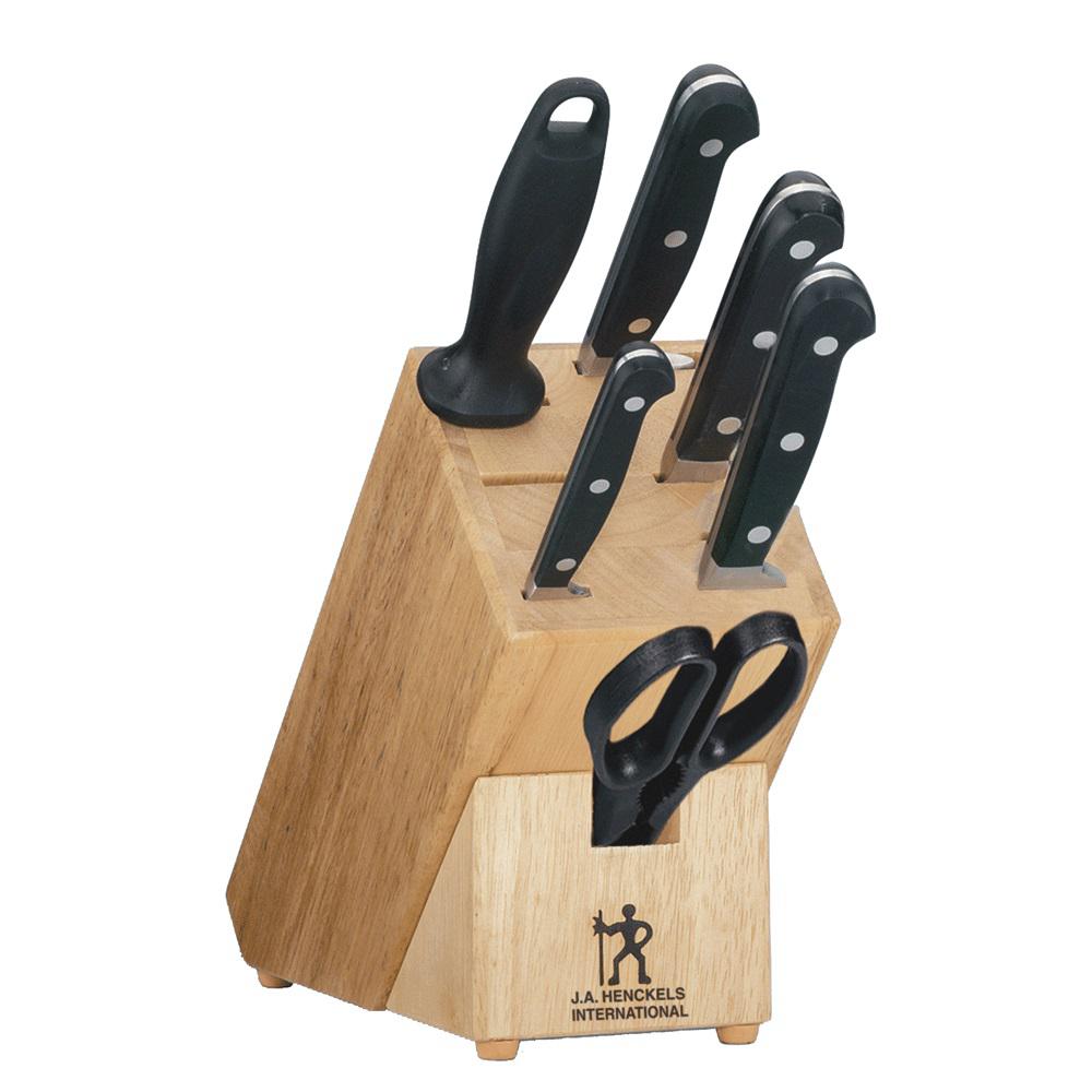 Ideal for slicing and chopping smaller fruits and vegetables. Acquire great along with quality item online.j.a. Kitchen henckels' international classic is a moderately priced cutlery line made in countries other than the company's home of germany. Set includes 3 inches paring knife 5 inches serrated utility 7 inches santoku knife hollow edge 8 inches chef's knife 8 inches bread knife 6 4.5 inches steak knife sharpening steel kitchen shears.