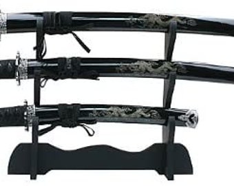 Well made set, includes kanji engraved wooden scabbards and last samurai style tsuba, unsharpened, stainless blades with sim;uated temper and black cord handle. What you need is this awesome set of samurai inspired kitchen knives. After all, it's where the samurai hailed from.