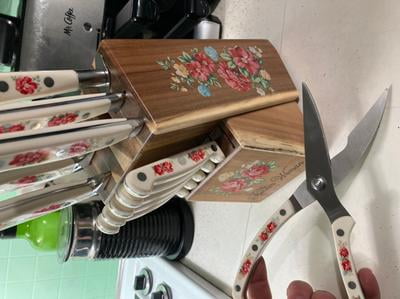 The title of the series is taken from drummond's blog of the same name. Many knife aficionados also find it attractive. Pioneer woman breezy blossoms knife set.