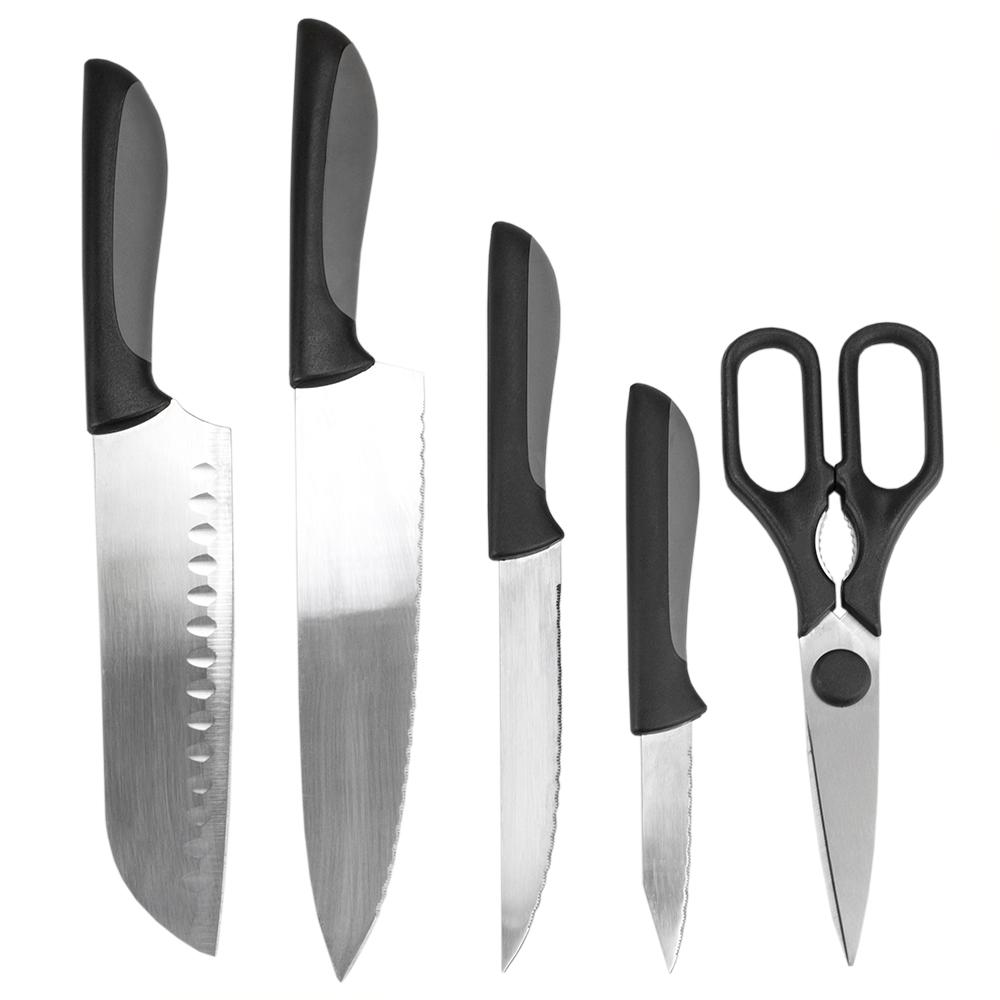 12% off kcasa 6 pcs stainless steel kitchen knife set meat cleaver slicer chef fruit paring knife sharpener scissors with wooden knife set block 0 review. This is for any serious chef. Chef essential knife set has 7 knife pieces in a variety of blue, red, and black colors. It's perfect for everything from chopping vegetables to.