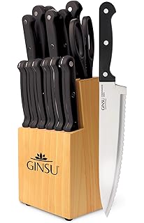 This ginsu chikara forged knife set includes everything you need to prepare delicous and complex meals organized in a sophisticated bamboo finish block: Ginsu (/ˈɡɪnsuː/) is a brand of direct marketed knives that was made popular in the united states by being sold on television using infomercials characterized by hawker and hard sell pitch techniques. It was the ginsu knife. Ginsu chikara series 8 piece cutlery set in bamboo block.