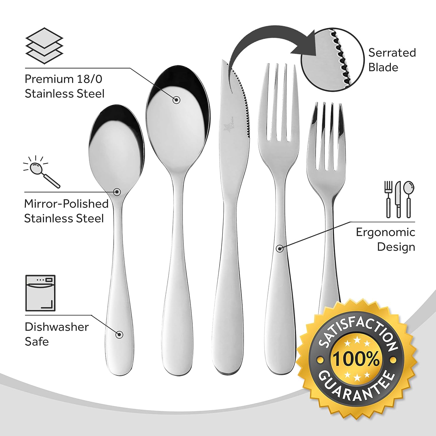 Amazon Com Cutlery Silverware Flatware Set Stainless Steel Utensils Dishwasher Safe Include Mirror Polished Knife Spoon Fork For Kitchen Restaurant 20 Piece Service For 5 Arc Handle Flatware Sets from images-na.ssl-images-amazon.com