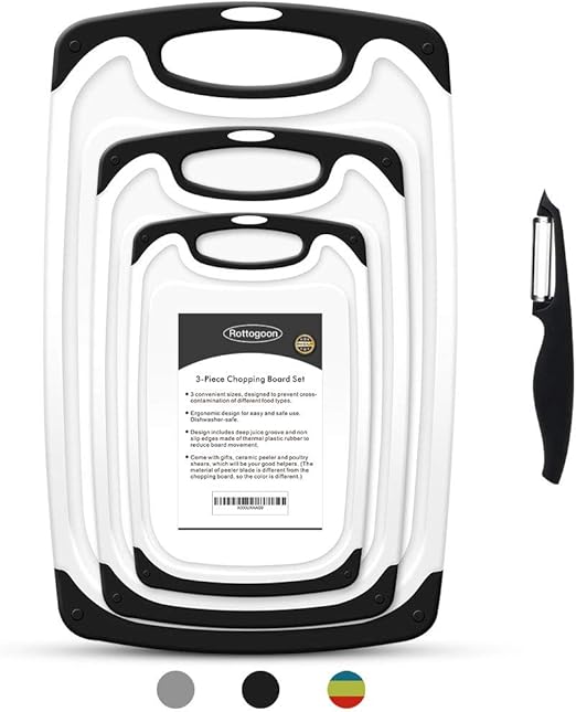 Amazon Com Famiry Reversible Cutting Board Set Of 3 Plastic Chopping Board For Kitchen Non Slip Design With Easy Grip Handle Juice Grooves Bpa Free Dishwasher Safe 3 Piece Black Kitchen Dining from images-na.ssl-images-amazon.com