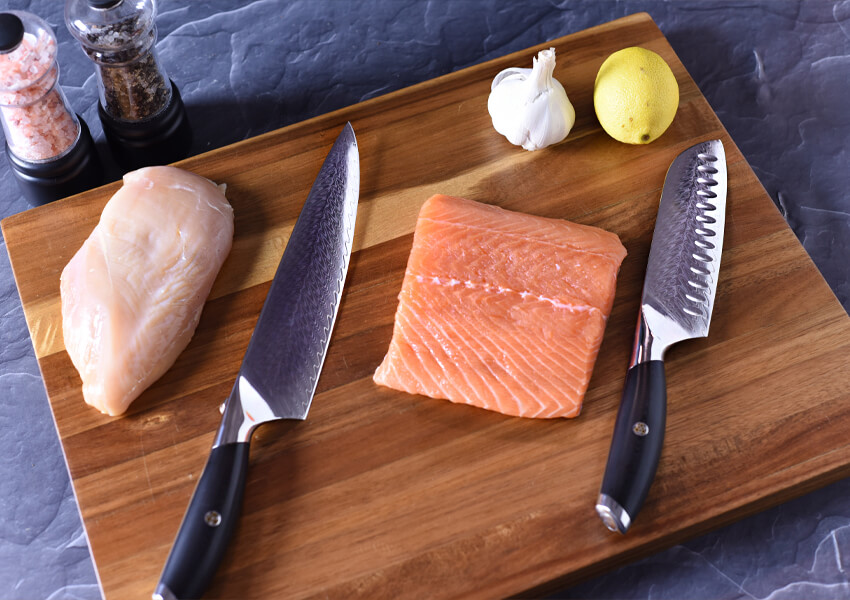 1 x titanium chef's knife + 1 x titanium santoku knife. Both are general purpose knives that can be used for a variety of tasks in the kitchen, including chopping, dicing, cutting, as well as cutting. This means that the santoku is typically smaller than a chef knife. I'll go over the differences between the.
