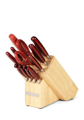 50+ Kitchenaid Knife Set Red 12 Piece. The set has a paring knife, santoku knife, slicer, chef knife, shears and steak knives. The contoured handles provide a comfortable grip and the knives are perfectly weighted and balanced for precision and accuracy while cutting.